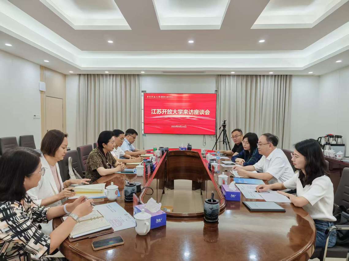 在广东开放大学,该校党委副书记、校长刘文清对调研组一行表示热烈欢迎,并介绍了该校以构建“泛在可及、普惠优质”的终身教育体系为使命,深入实施“一体两翼三化”发展战略,在推进广东终身教育学分银行建设、发展老年教育重点学科、牵头建设全国智慧健康养老行业产教融合共同体等方面取得的显著成效。她希望双方能够共享长三角与珠三角区域发展经验,互学互鉴,共同探索服务全民终身学习的教育新路径。韩承辉对广东开放大学的办学理念与成果给予了高度评价,特别是在数字化转型中形成的“平台+生态”模式,为开放大学建设提供了有益借鉴,对我校开拓思路、深化改革、科学谋划未来发展具有重要的指导意义。